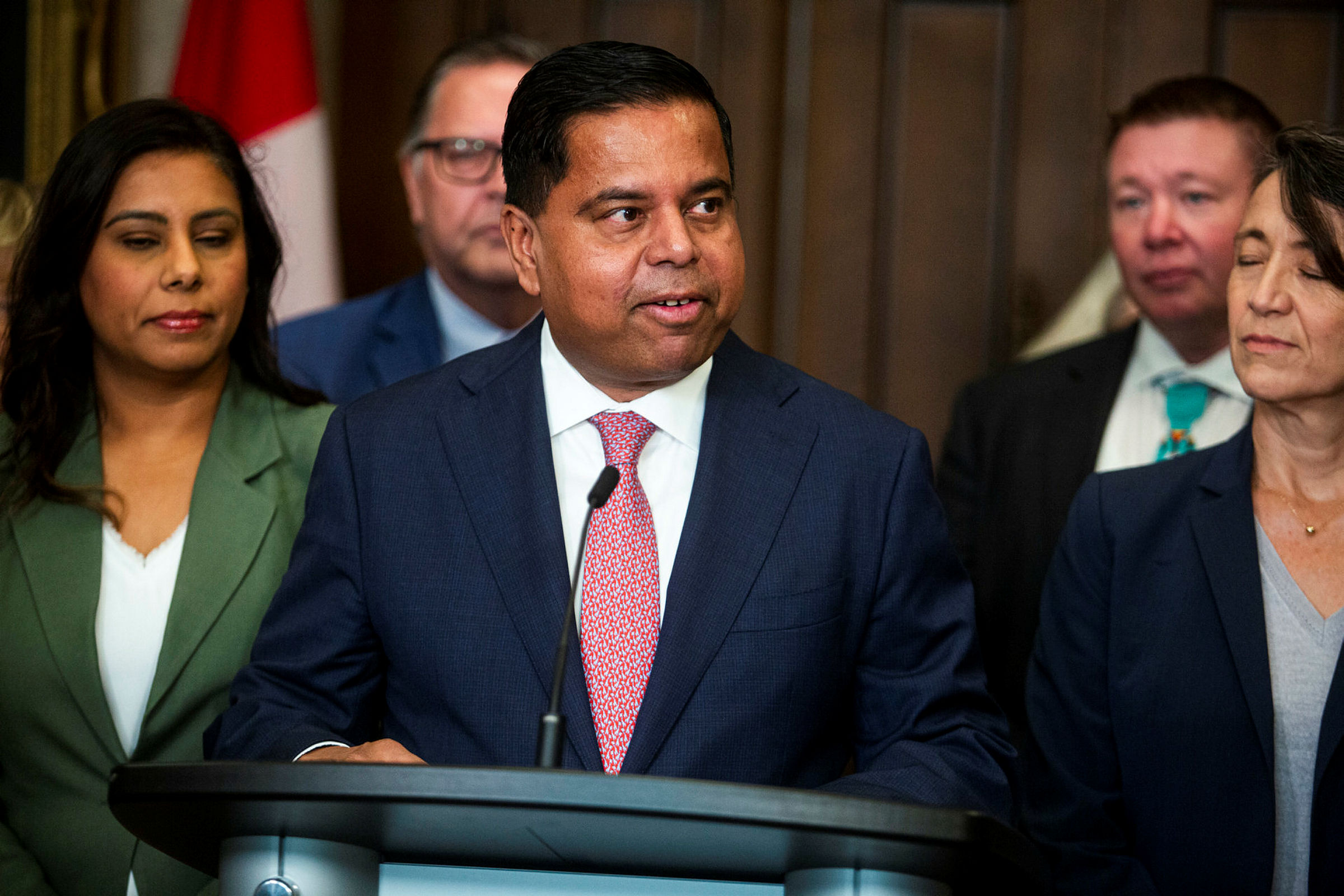 Minister of Public Safety Gary Anandasangaree holds a press conference in the House of Commons foyer on Sept. 23, 2025, to speak about the next phase of the government’s gun buyback program.