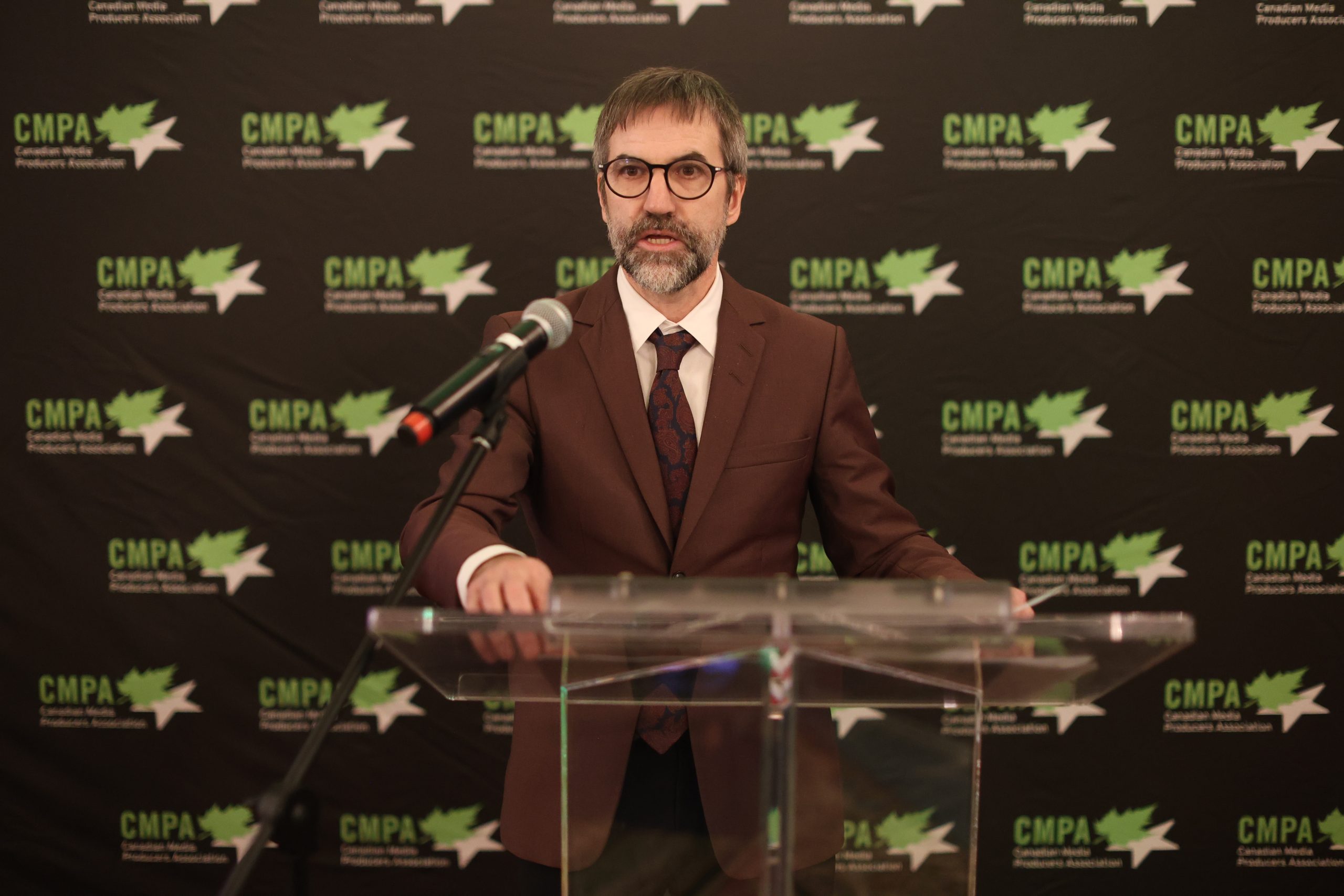 Culture Minister Steven Guilbeault speaks at the Canadian Media Producers Association reception held at the Chateau Laurier, Ottawa, on Oct. 7.